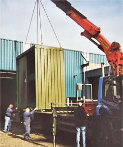 De constructies worden met eigen vervoer (vrachtwagen met kraan) afgeleverd en geplaatst met eigen hoogwerkers en heftrucks.